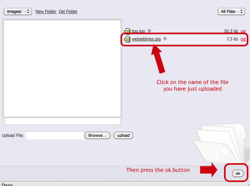 When the file has been uploaded, it will appear on the list to the right. Click on the file on the list on the right, and then click on the ?ok? button.