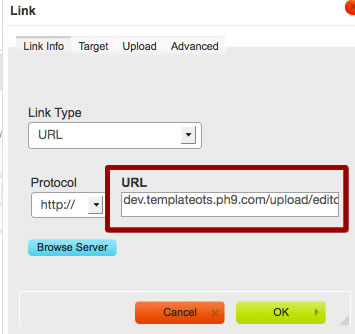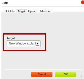 9) If you want your link to your PDF to load the PDF in a new window, then click on the "Target" tab