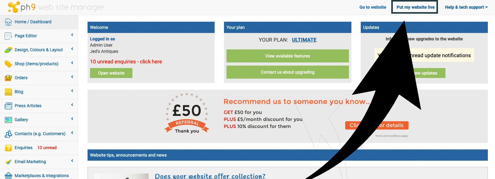 If your website is currently in test mode and you'd like to put your website live, please simply fill in our "go live form".