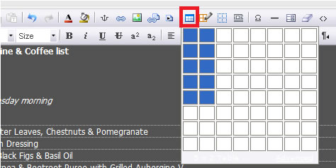 2) Hover over the boxes and select how big you want the table to be. Eg if you would like the table to have 5 rows, and 2 columns, then you would select 2 by 5 as in the screenshot below. Once you?ve highlighted how big you want the table to be, left click again