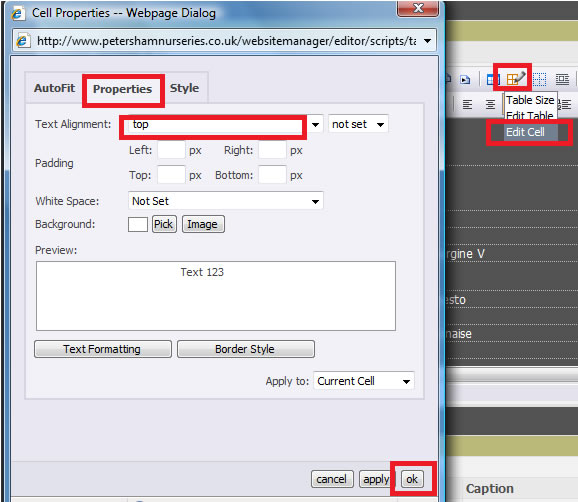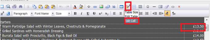 2) Click on the edit table icon on the toolbar and choose ?Edit Cell?