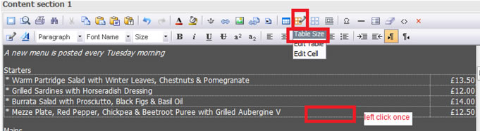 2) Click on the edit table icon on the toolbar, and select ?Table Size?