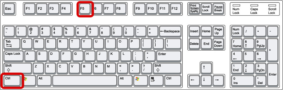 Press the CTRL key and the F5 key at the same time, as shown on the picture below.