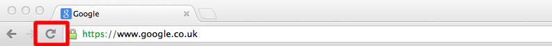 Your web browser will have a refresh icon. We have provided screenshots below of roughly where you can find this icon (we say "roughly" as each web browser does tend to change what the button looks like and where to find it from time to time, however this guide should give you a pretty good idea).