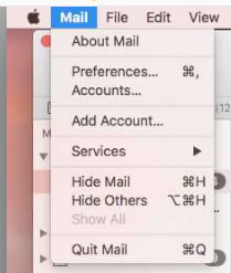 Step 2 - Click on the "Mail" drop down menu, and then click on "Preferences" (as shown above)